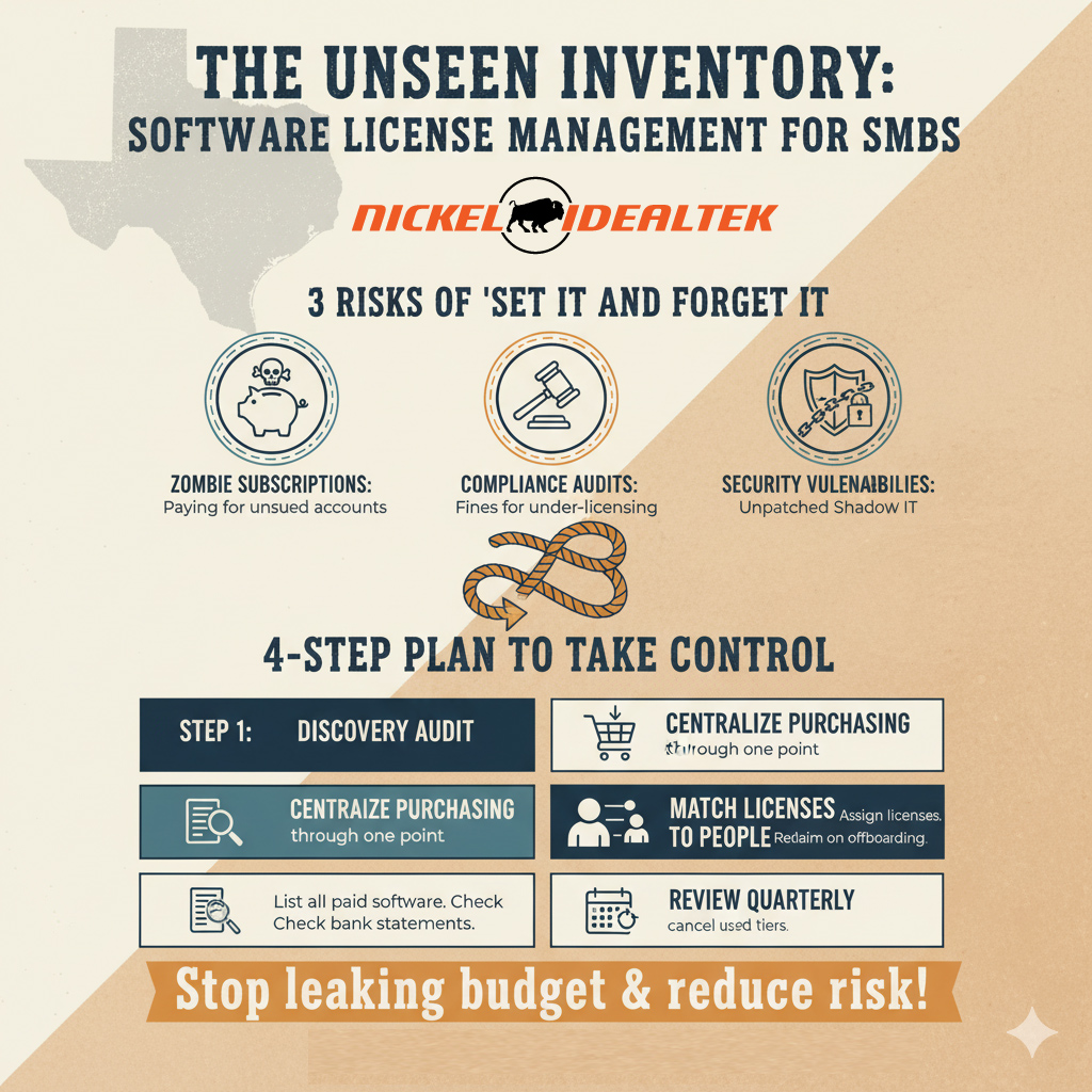 For many small businesses in Houston, software is an “unseen inventory.” It accumulates quietly—a subscription here, a user license there—until it becomes a tangled mess of wasted budget and compliance risks.
